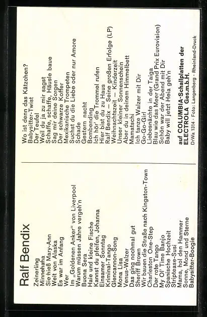 AK Musiker Ralf Bendix mit gelben Tuch, Autograph
