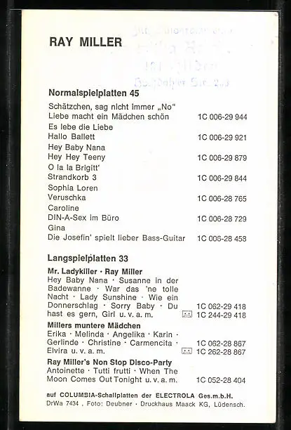 AK Musiker Ray Miller mit langen Koteletten, Autograph