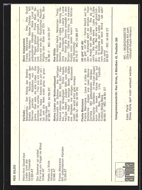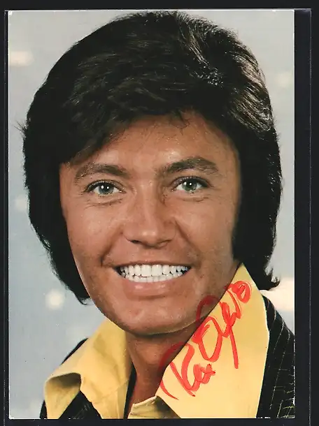 AK Musiker Rex Gildo im gelben Hemd mit original Autograph