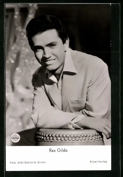 AK Musiker Rex Gildo in schwarzweiss fotografiert