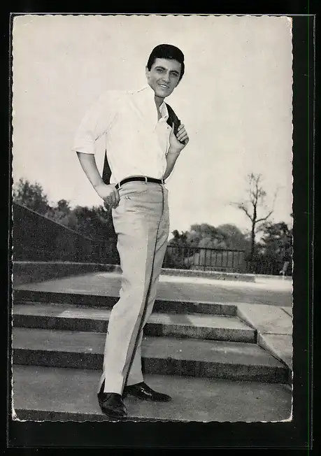 AK Musiker Rex Gildo steht auf Treppenstufen