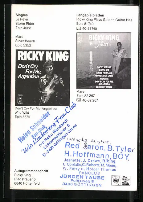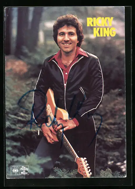 AK Musiker Ricky King mit E-Gitarre, Autograph