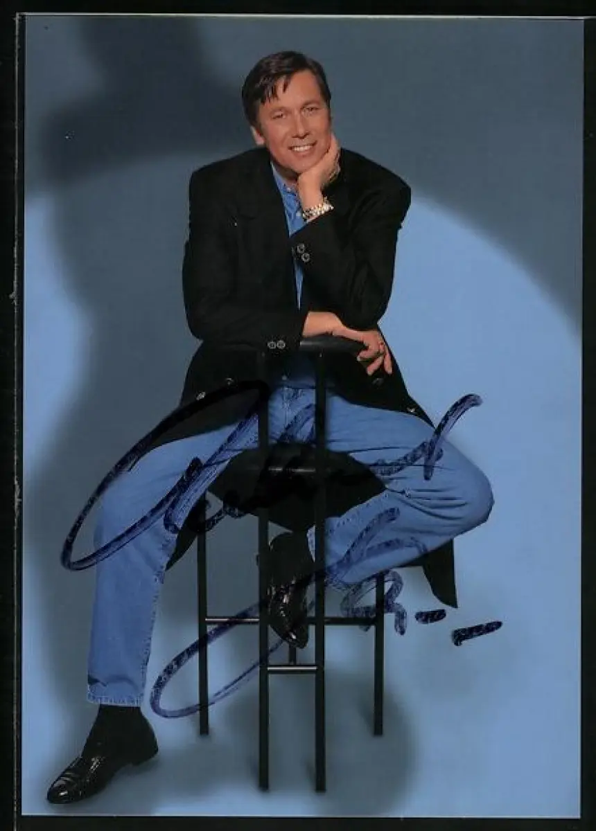 AK Musiker Roland Kaiser auf einem Hocker sitzend mit Autograph