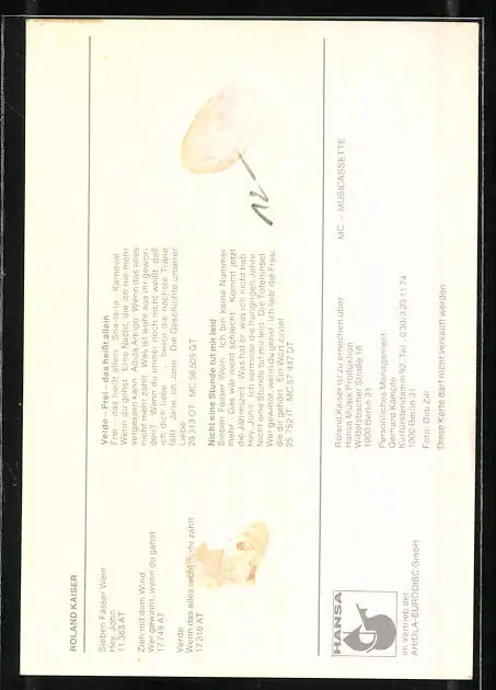 AK Musiker Roland Kaiser mit Föhn-Frisur, Autograph