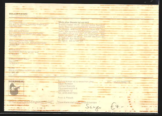 AK Musiker Roland Kaiser mit dem Mikrofon in der Hand, mit Autograph
