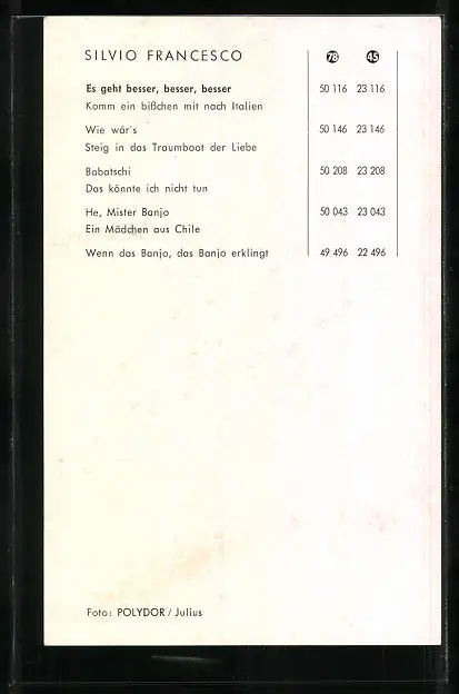 AK Musiker Silvio Francesco mit Anzug und Krawatte, Autograph