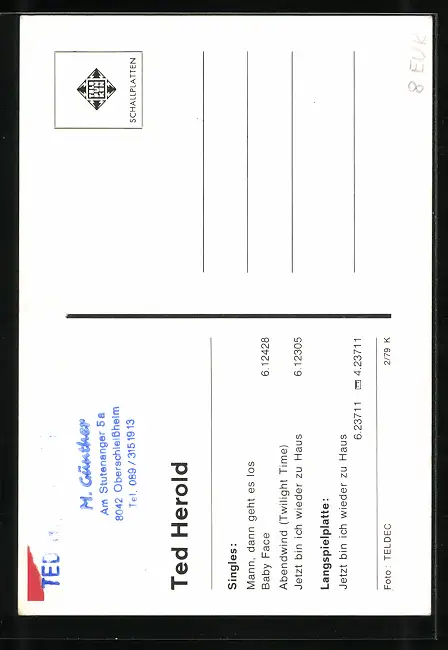 AK Musiker Ted Herold mit Akustikgitarre, Autograph