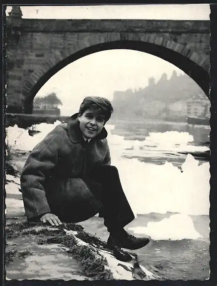 AK Musiker Thomas Fritsch an Ufer sitzend mit Eis auf dem Wasser