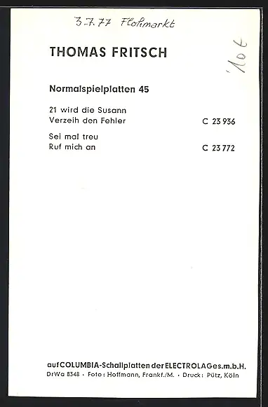 AK Musiker Thomas Fritsch in Nahaufnahme, mit Autograph
