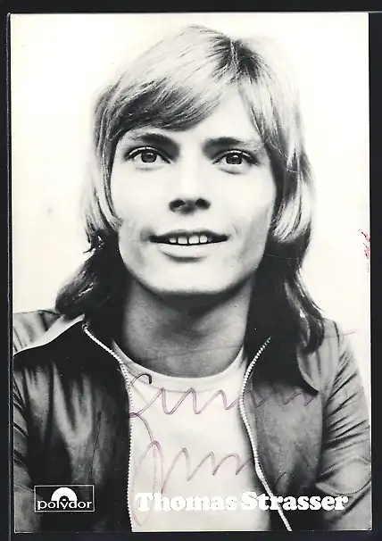 AK Musiker Thomas Strasser in weissem T-Shirt, Autograph