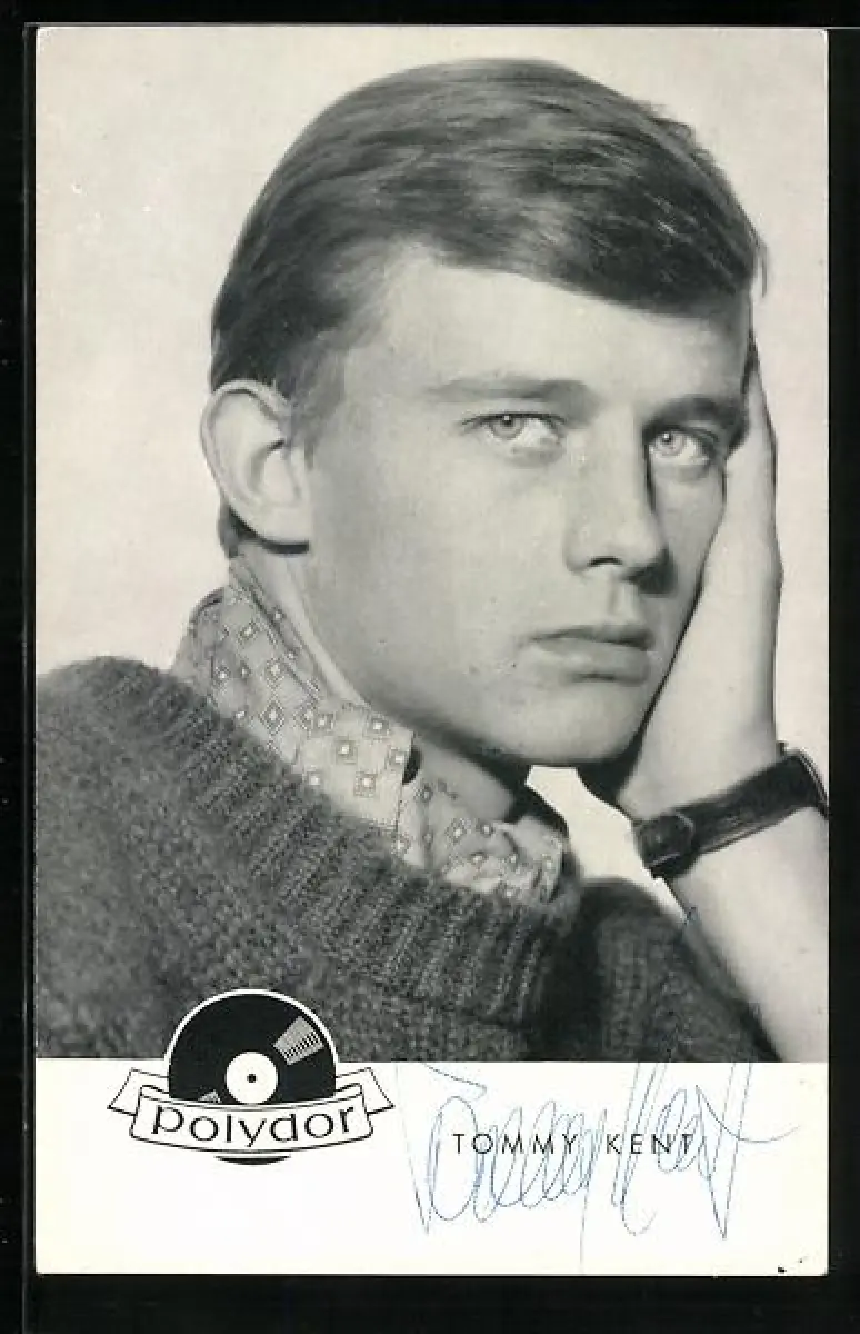 AK Musiker Tommy Kent im Strickpullover, Autograph