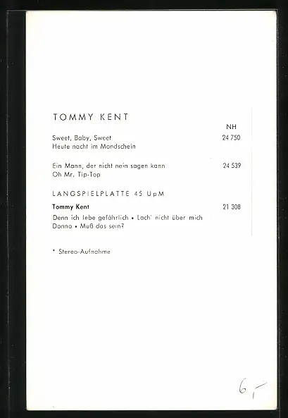 AK Musiker Tommy Kent zur Seite lächelnd, Autograph