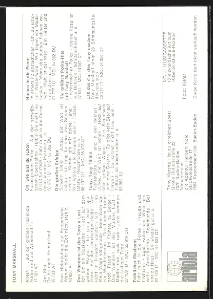 AK Musiker Tony Marshall auf einem Feld, original Autograph