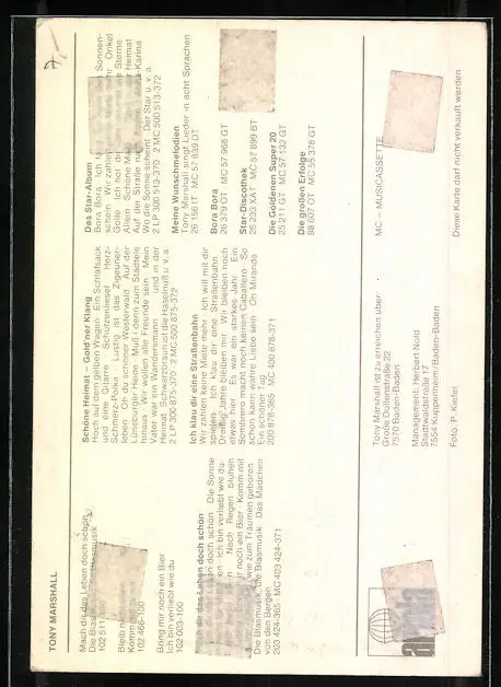 AK Musiker Tony Marshall im Anzug mit Fliege, Autograph