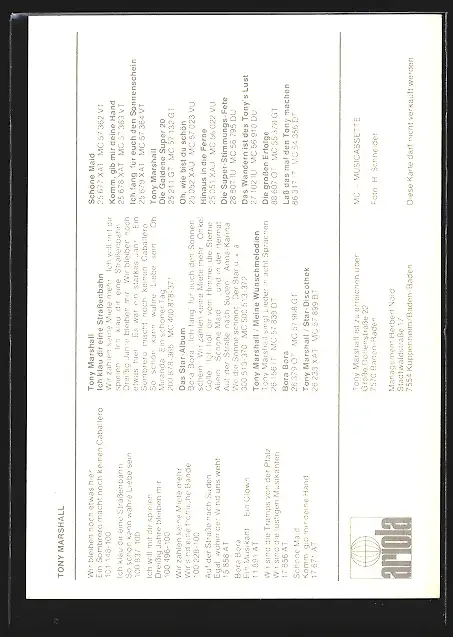 AK Musiker Tony Marshall im Jackett mit Fliege, Autograph