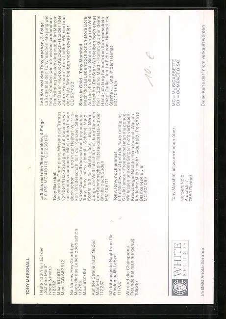 AK Musiker Tony Marshall mit lächelndem Gesicht, Autograph