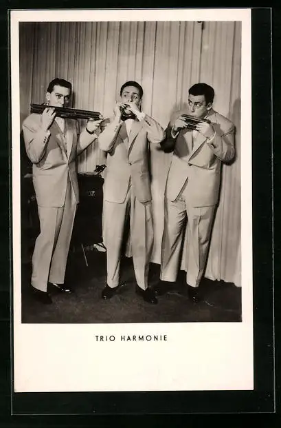 AK Musiker Trio Harmonie in Anzügen mit Instrumenten