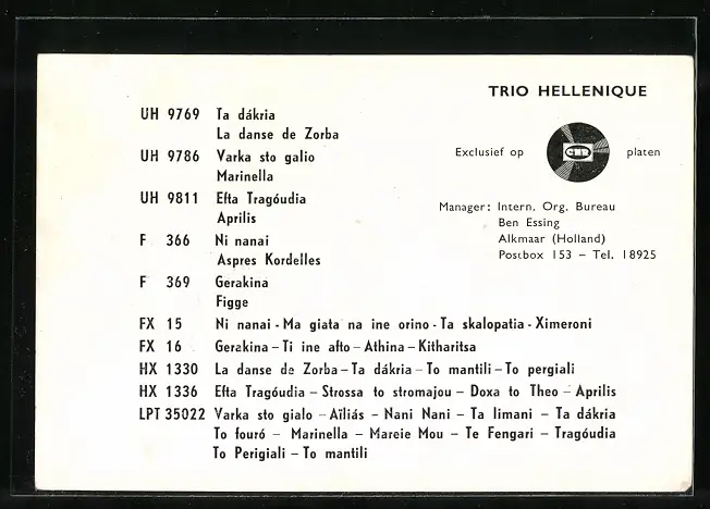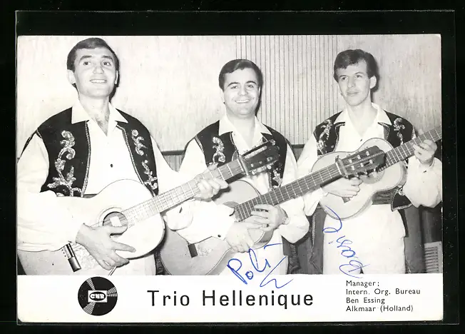 AK Musiker-Trio Hellenique mit ihren Instrumenten und Autogramm