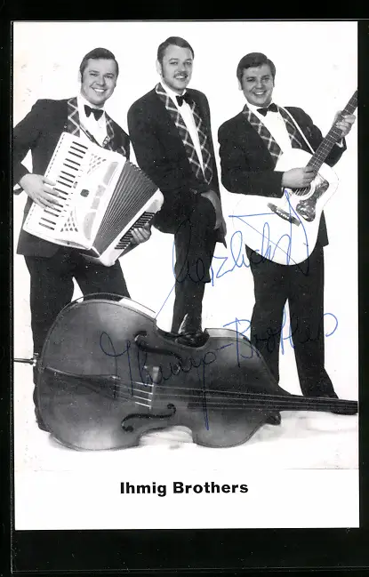 AK Musiker-Trio Ihmig Brothers mit Instrumenten und Autogrammen