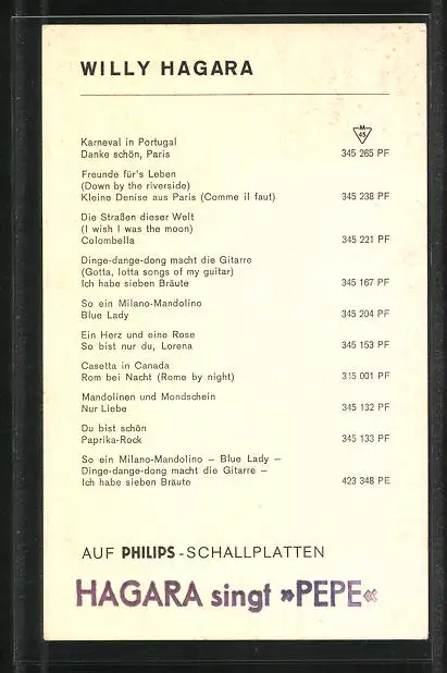 AK Musiker Willy Hagara im Anzug zur Seite schauend