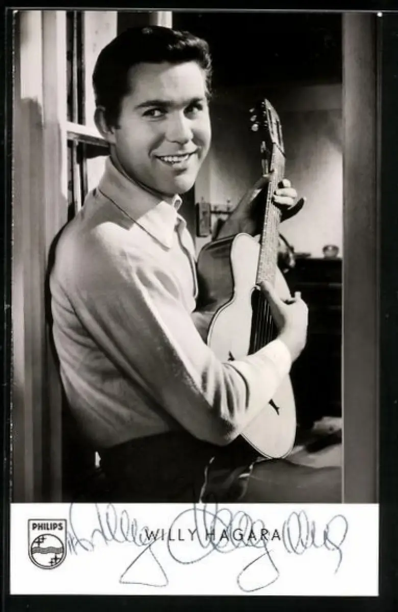 AK Musiker Willy Hagara mit Gitarre, Autograph