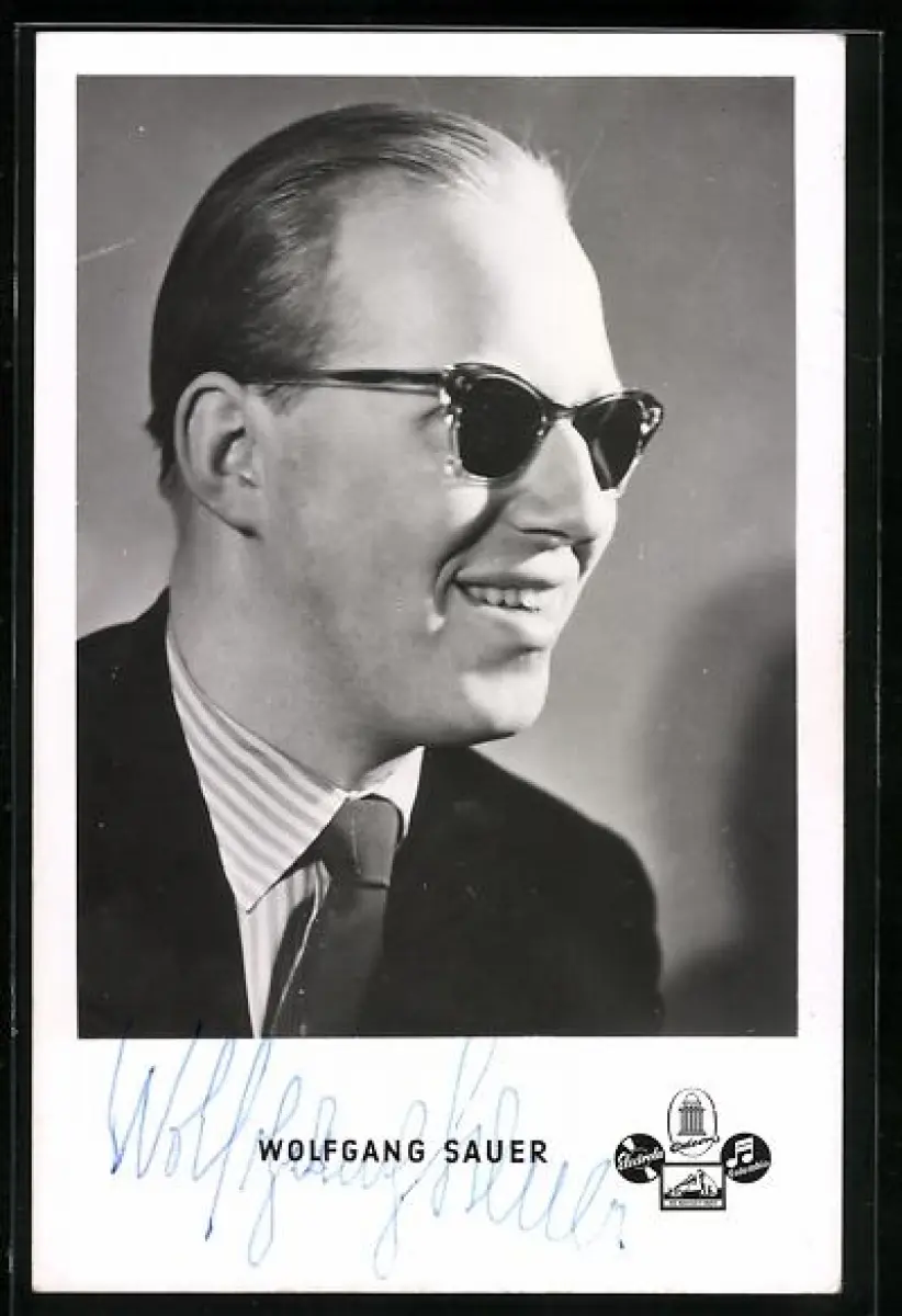 AK Musiker Wolfgang Sauer, Portrait im Anzug, Autograph