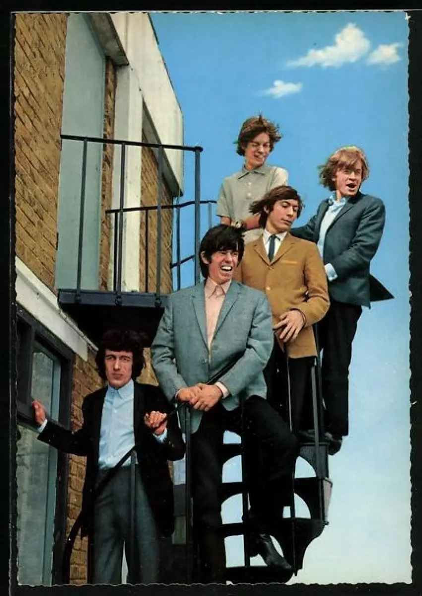 AK Musiker der Band The Rolling Stones posieren auf einer Treppe