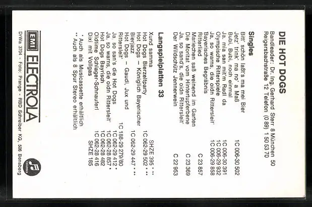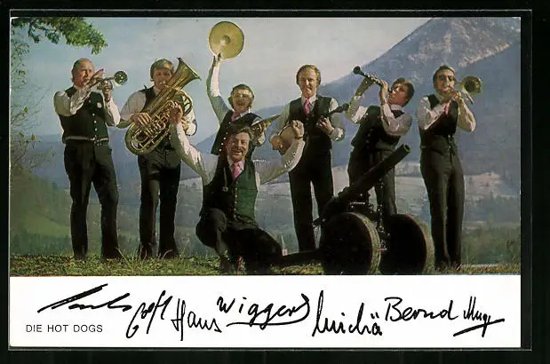 AK Musiker der Hot Dogs in Tracht mit Instrumenten, Autogramme