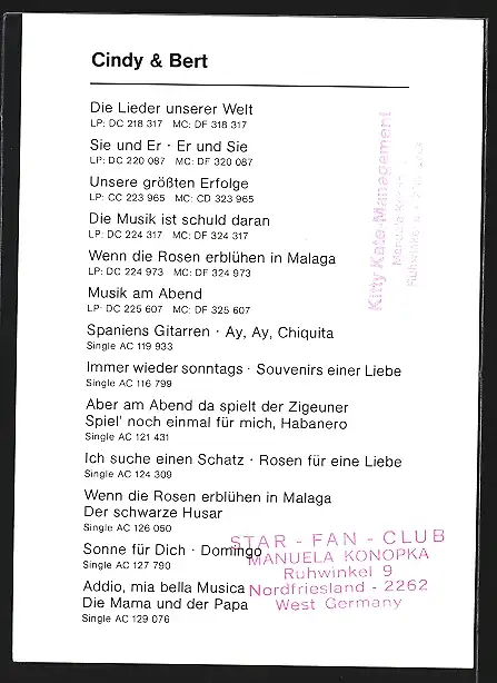 AK Musiker des Duos Cindy & Bert in eleganter Garderobe Arm in Arm, mit Autograph