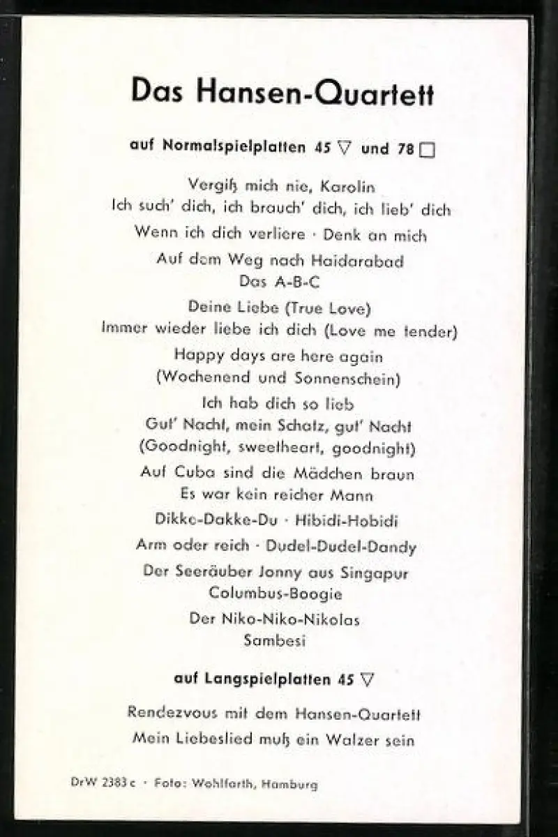 AK Musiker des Hansen-Quartetts lächeln in die Kamera, Autograph