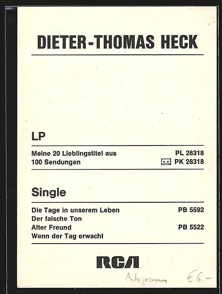 AK Musiker und Showmaster Dieter Thomas Heck, original Autograph