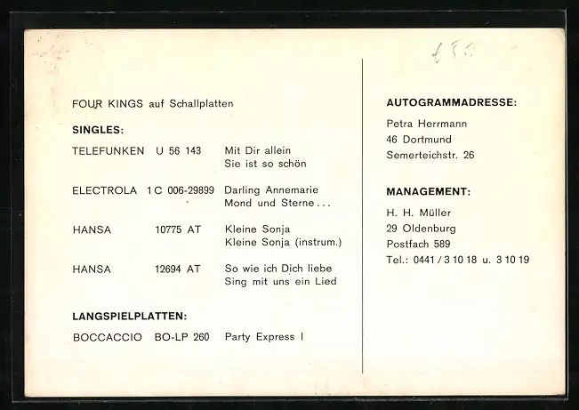AK Musikergruppe Four Kings mit Medaillen, Autograph