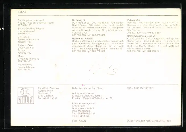 AK Musikergruppe Relax posieren mit Stühlen und Stange, Autograph