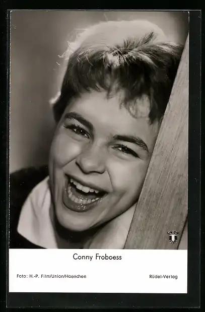 AK Musikerin Conny Froboess, Halbportrait lachend