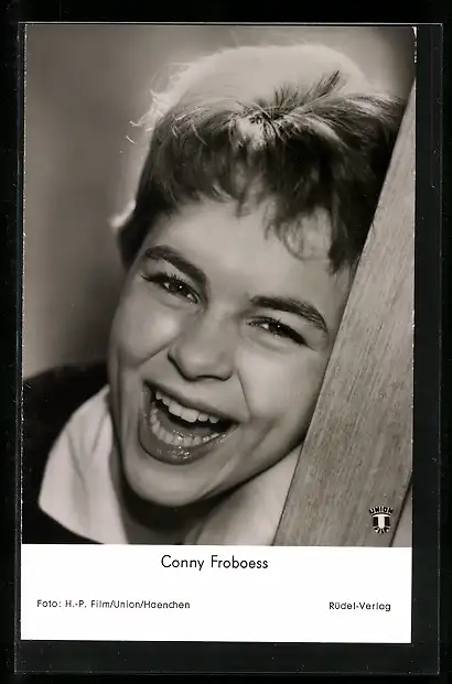 AK Musikerin Conny Froboess, Halbportrait lachend