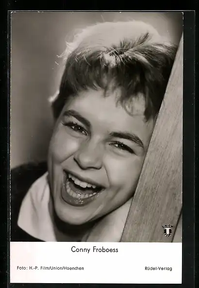 AK Musikerin Conny Froboess, Halbportrait lachend
