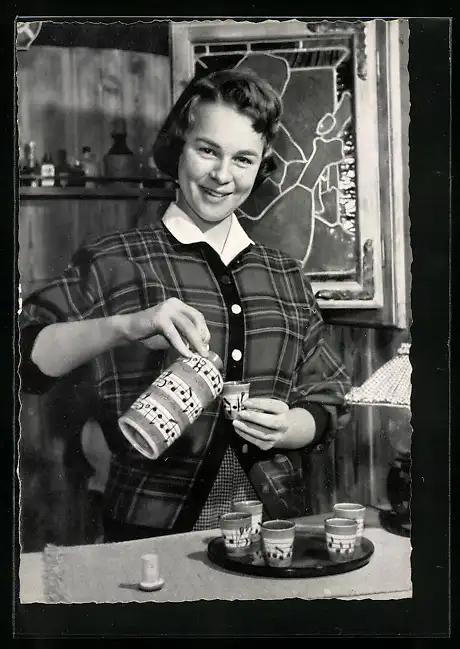 AK Musikerin Conny Froboess giesst sich einen Becher ein