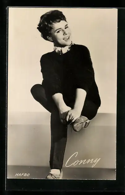 AK Musikerin Conny Froboess mit übereinandergeschlagenen Beinen