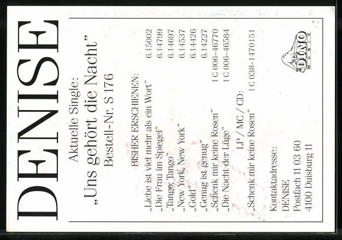 AK Musikerin Denise in goldenem Kleid, Autograph