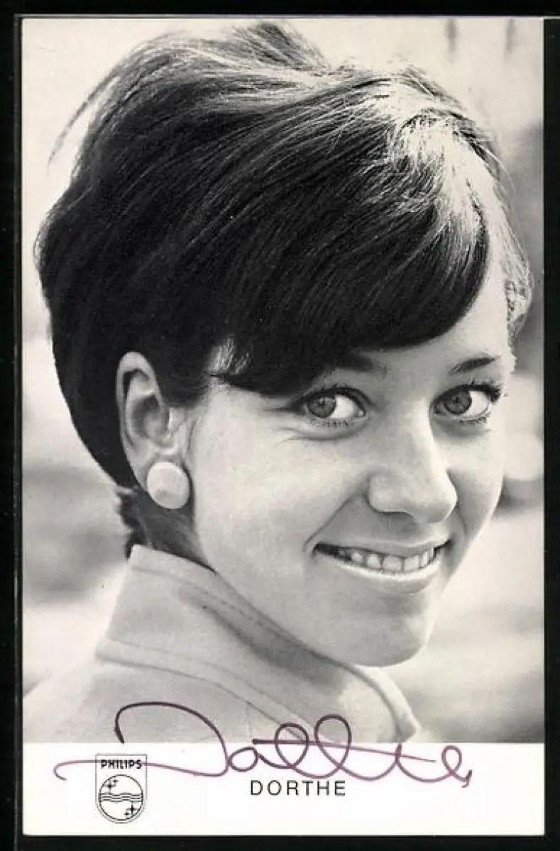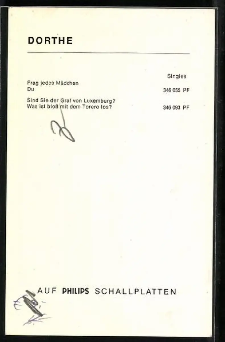 AK Musikerin Dorthe lächelnd in die Kamera blickend, Autograph