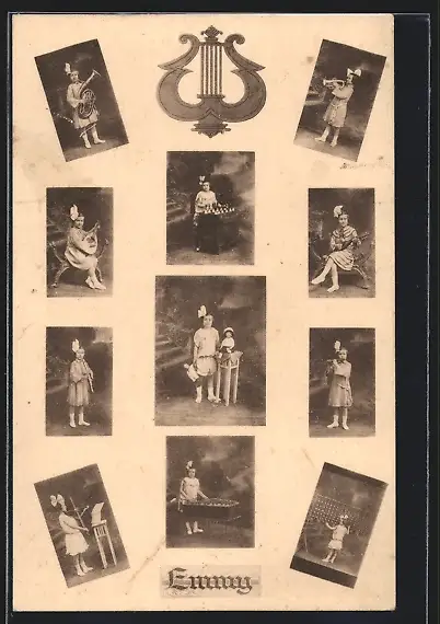 AK Musikerin Emmy mit zahlreichen Instrumenten