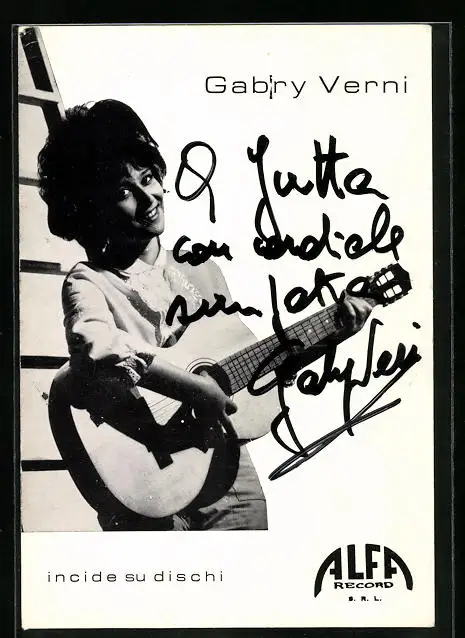 AK Musikerin Gabry Verni mit Gitarre, original Autograph