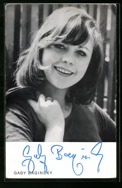 AK Musikerin Gaby Baginski lächelt, Autograph