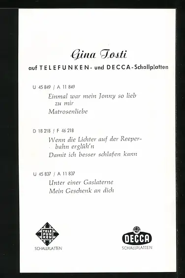 AK Musikerin Gina Tosti mit Ohrringen, Autograph