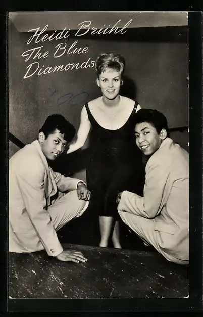 AK Musikerin Heidi Brühl der Band The Blue Diamonds an der Treppe