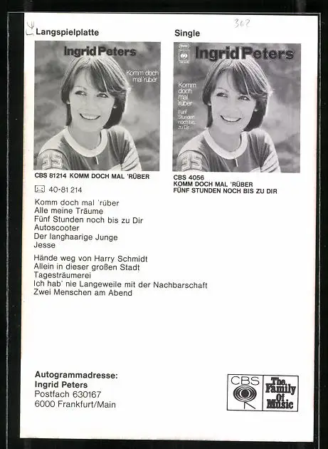 AK Musikerin Ingrid Peters mit freundlichem Lächeln zur Seite, Autograph