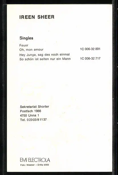 AK Musikerin Ireen Sheer im Paillettenhemd, Autograph