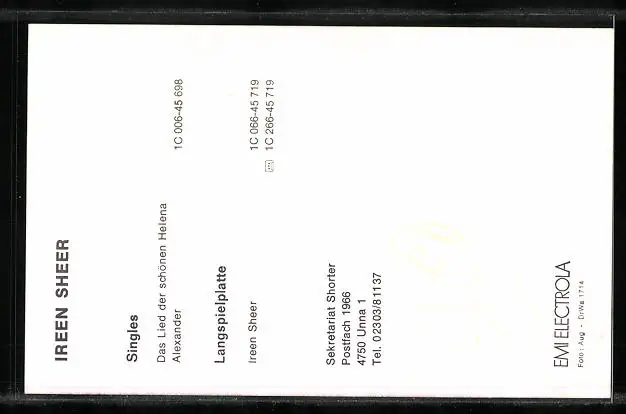 AK Musikerin Ireen Sheer lächelt, Autograph
