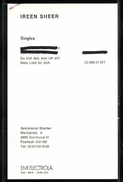 AK Musikerin Ireen Sheer mit lächelndem Gesicht, Autograph
