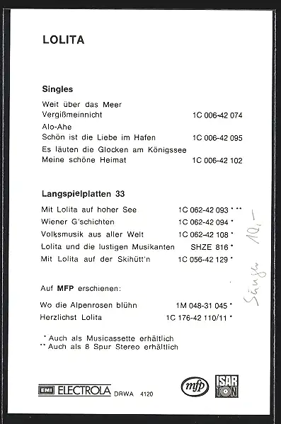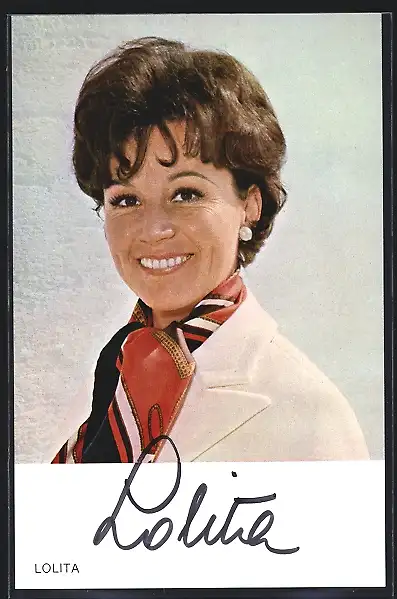 AK Musikerin Lolita lächelnd mit Halstuch posierend, mit Autograph